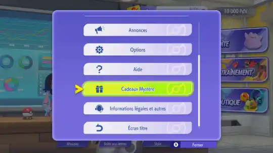 Avant de te lancer dans le jeu, jette également un oeil à la section Cadeau Mystère. Des codes promotionnels y sont parfois disponibles et permettent de récupérer des objets ou des Pokémon gratuitement. C'est rapide à faire et ça peut valoir le détour.