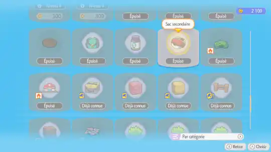 - le Sac secondaire apparaît à l’écran