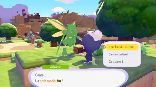 Pour obtenir du bois utilisable, vous devez confier vos rondins à un Pokémon possédant une spécialité de coupe de bois, comme Insécateur.