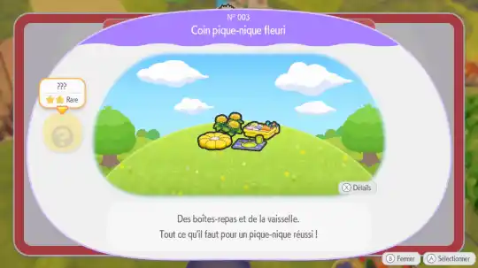 Les aigrettes récoltées s'échangent au Centre Pokémon contre des objets exclusifs sur le thème du pique-nique. Tous les articles sont disponibles en quantité illimitée pendant la durée de l'événement.