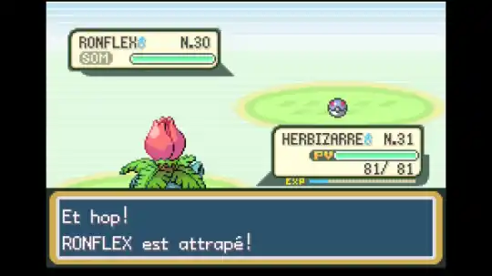 Capturer Ronflex : Pokémon Rouge Feu et Vert Feuille
